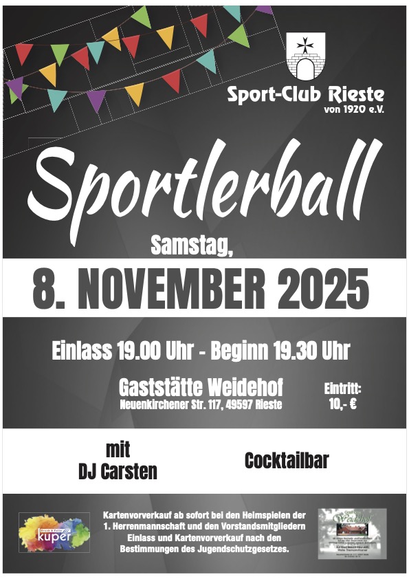 Als Fußballverein gestartet, hat sich der SC Rieste in den vergangenen 100 Jahren stets weiterentwickelt und bietet seinen Mitgliedern heute Angebote in den Bereichen: Fußball, Tischtennis, Boxen, Fitness, Yoga und Radsport.